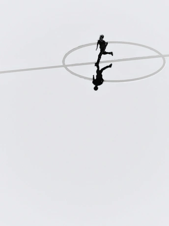 画面中,一位奔跑者的身影在简洁的背景下显得格外醒目。那道线条与圆圈似是跑道的标识,象征着前行的轨迹与目标。奔跑者在光影交错间,留下清晰的影子,仿佛是梦想与现实的交织。它传递出一种力量,鼓励人们在人生的道路上,不惧孤单,向着光的方向奋力奔跑。每一步都是对自我的超越,每一次挥汗都是对未来的期许,于无声处彰显生命的蓬勃张力。