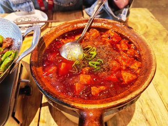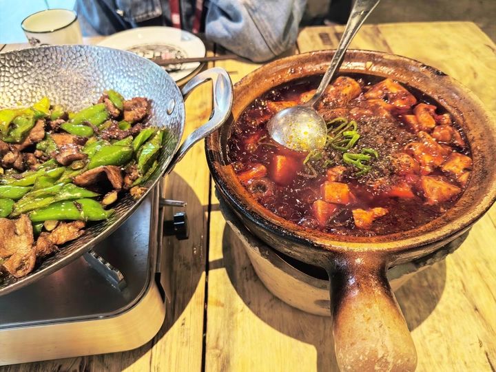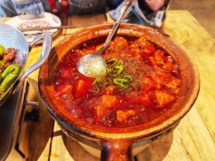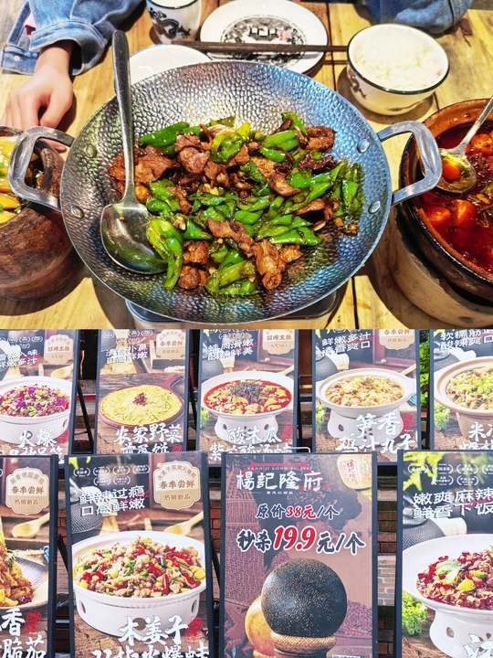 👭在成都,春熙路永远是热闹非凡的存在。趁着风和日丽的日子,我和闺蜜开启了一场春熙路逛吃之旅。 🏃逛到中午,我俩饥肠辘辘,便直奔杨记隆府重庆江湖菜我们点了一筷入川双人餐,每道菜都超绝! 🥢 擂钵烧椒茄子:烧椒的焦香与茄子的绵软融合得恰到好处。用擂钵捣碎,那浓郁香气瞬间散开,咸香微辣,巨下饭! 🥩 辣椒小炒肉:五花肉煎得微微卷曲,油脂渗出,和青椒搭配,肉香十足,还不油腻,一口接一口根本停不下来~ 🍲 砂锅麻婆豆腐:豆腐炖煮得超入味,裹满浓郁酱汁,麻辣鲜香,入口即化,谁吃谁迷糊! 店里装修充满江湖气息,木质桌椅、复古灯具,氛围感拉满✨。服务员热情又周到,体验感超棒~ 这顿简餐吃得超满足!下次来春熙路还要冲他家别的招牌菜!宝子们有在杨记隆府吃到特别惊艳的菜吗?评论区分享分享呀~ 🏠名称:杨记隆府重庆江湖菜(全国总店) ⏰营业时间-11:00-22:00 ⛳️地址:锦江区义学巷73号> 🚎距地铁3号线春熙路站E2口步行460m