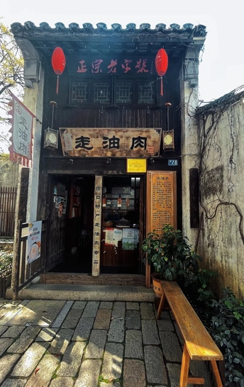第一站带你们走进走油肉店铺 走进古镇,来到走油肉店铺。走油肉是荡口的传统名菜,又名虎皮肉 、董肉等,流行于江南苏浙沪一带 。传说它由明末名妓董小宛所创 。名士冒辟疆喜欢吃肥肉,董小宛为迎合他的口味,遍访名厨潜心研究,最终做出不油不腻的走油肉,成功征服冒辟疆并被娶回家 。还有一说与华察有关,华太师府的厨子准备清蒸五花肉时,帮厨误将肉丢进热油锅,老厨师急中生智,将炸酥的肉块改刀、加调料后清蒸,没想到口感肥而不腻,大受赞赏,逐渐流传开来 。走油肉需经香料熬煮、热油洗礼、冷水浸、改刀撒料、上锅蒸等工序,咸鲜酥烂、胶质十足、软烂不腻 。