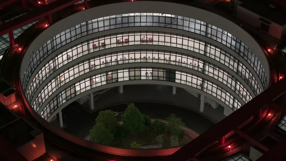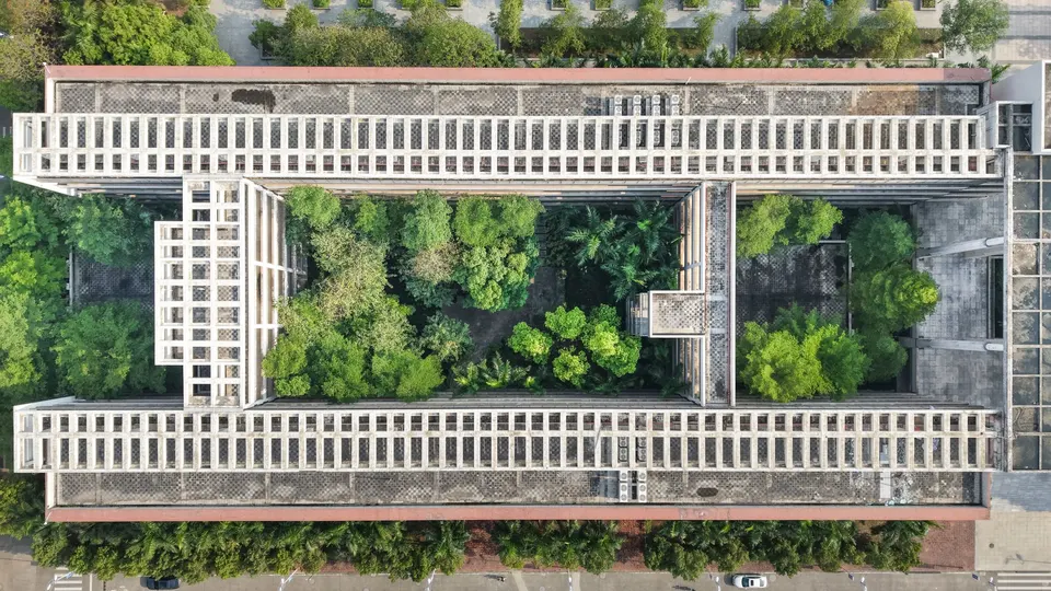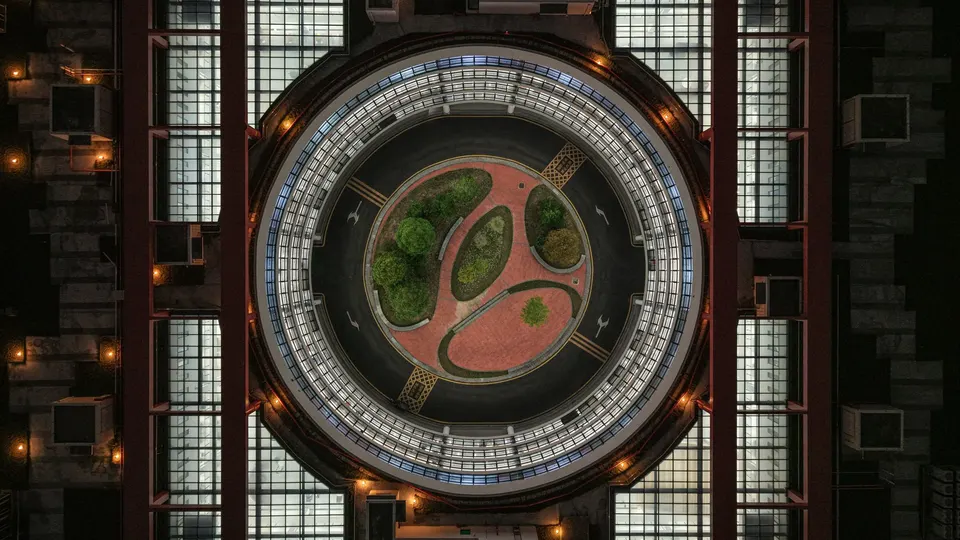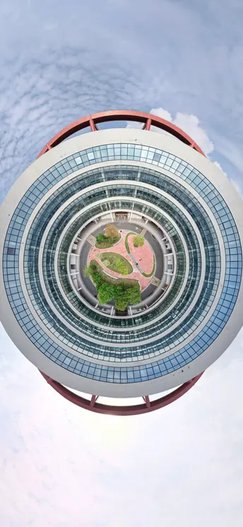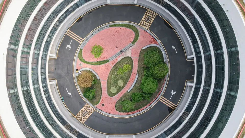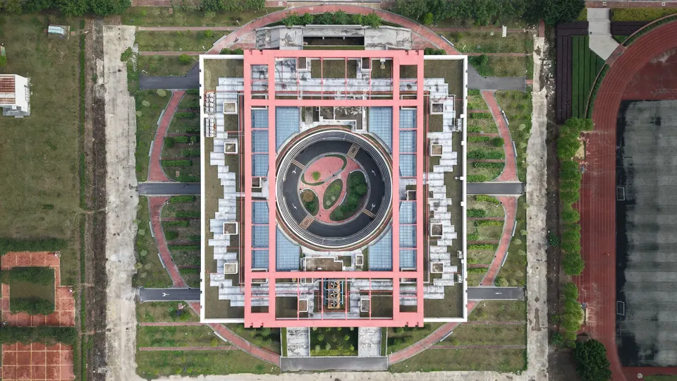 广金图书馆,铜钱般的方圆之姿,理性与浪漫交融之美。 俯瞰,方正外形象征规则秩序,线条勾勒沉稳,如思维路径,引学子有序求知。内部圆形中庭,打破规整,似知识漩涡,充满灵动包容。 阳光洒下,光影交错,圆方界限模糊,图书馆成活力知识磁场。夜幕,灯光从方形窗格透出,与圆形中庭夜色相映。方窗如知识窗口,圆庭似深邃夜空,容纳求知灵魂。 广金图书馆,于方圆间,承学术严谨,容思想自由,是知识灯塔,以建筑美学,引学子前行。 设备:DJI Air 3S
