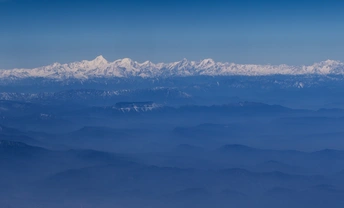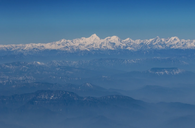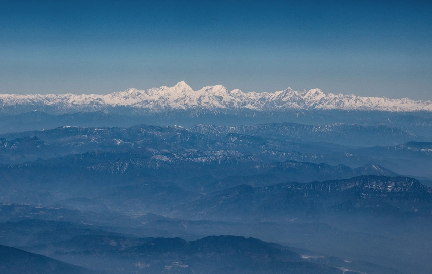 蜀中多仙山,峨眉邈难匹。在高空看贡嘎,海拔7000米的雄伟山峰下,是横断山脉的层峦叠嶂,河流穿凿出山谷,岚霭飘荡其间,让人幻想缥缈仙踪故事。