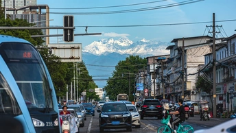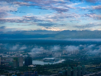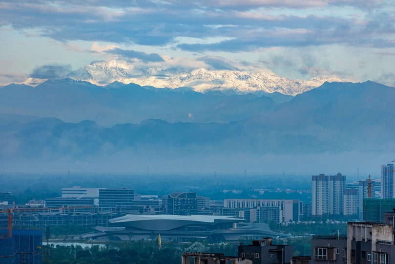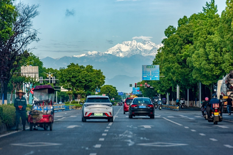 昨夜的大风吹走了空中的尘霾,雪山在大雨过后如约而至