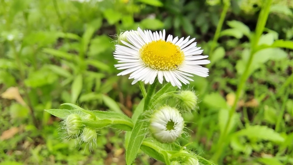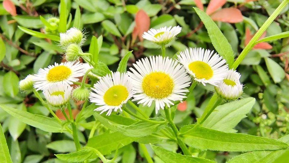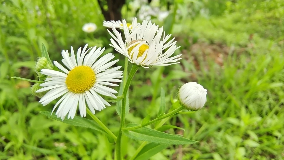 一年蓬盛情绽放,白花黄蕊,清新雅致惹人爱
