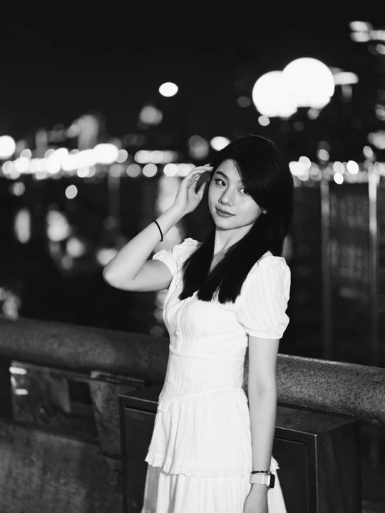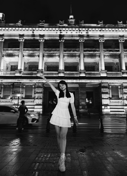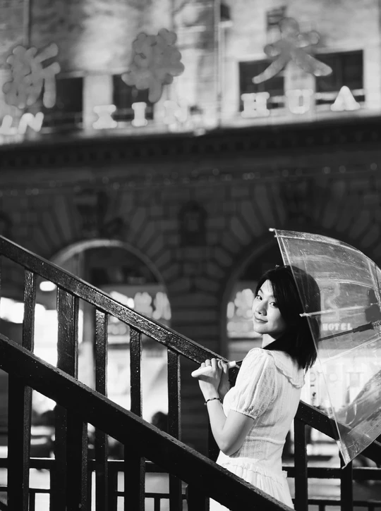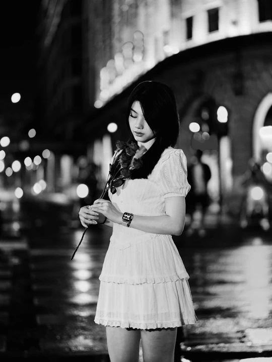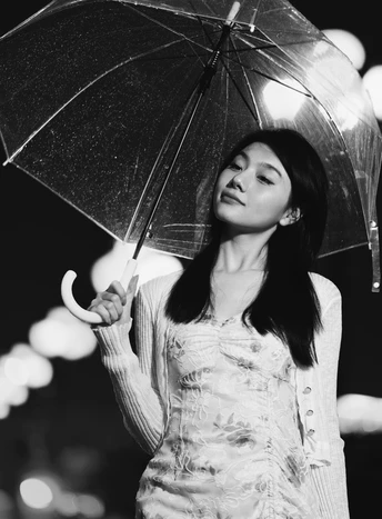 这组夜景人像写真,聚焦于一位女士在雨夜城市中的绰约风姿。黑白色调宛如时光滤镜,滤去繁杂色彩,沉淀出复古文艺的韵味,让画面弥漫着经典且迷人的气息。