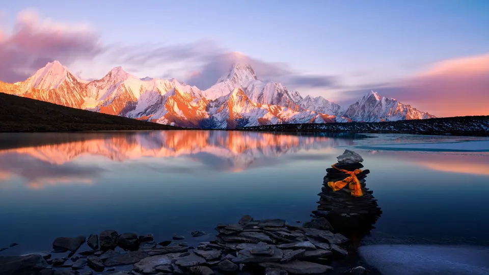 我除了拍娃,也拍风光,有幸运气好在冷噶措拍到了贡嘎的日照金山,希望大家也好运