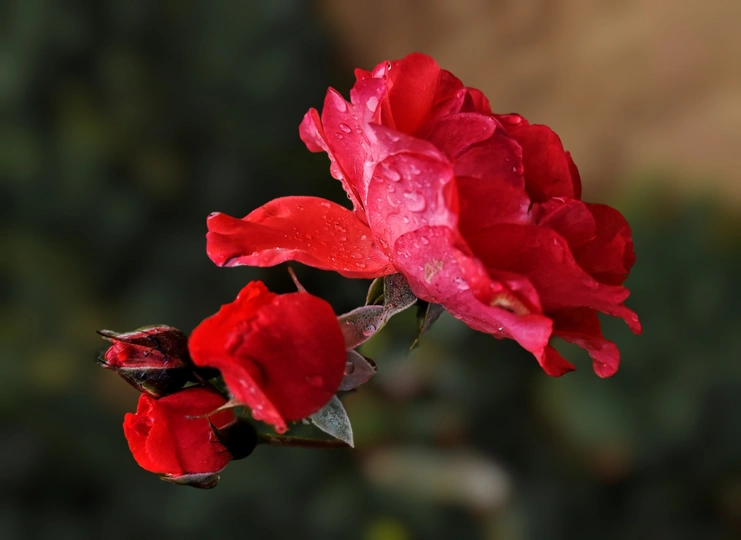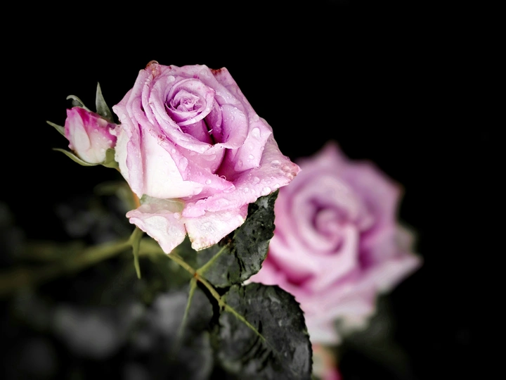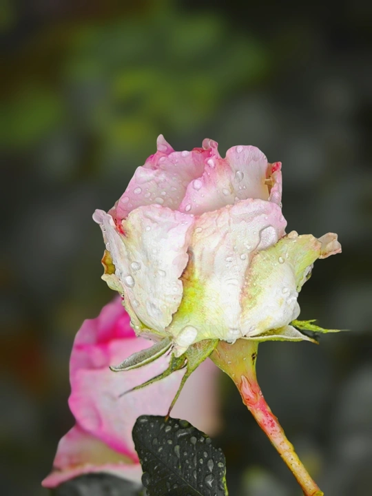 雨后,各色月季花娇艳欲滴,水珠滚落花瓣。如遗世佳人,在静谧中绽放温柔,于时光里镌刻一抹浪漫与诗意。