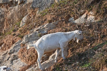 山羊属哺乳纲牛科,草食性,多栖山区草原。头生双角、颌有胡须,蹄硬善攀,性情活泼,适应性强,具经济价值,提供肉、奶、毛皮。