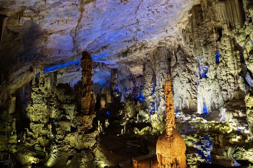 织金洞位于贵州毕节市织金县官寨苗族乡,是国家5A级旅游景区、世界级地质公园。洞内为喀斯特地貌,有40多种堆积物,景观丰富奇特。洞体分为四层,空间宏大,被誉为“溶洞之王”,具有极高的旅游、美学和科学价值。