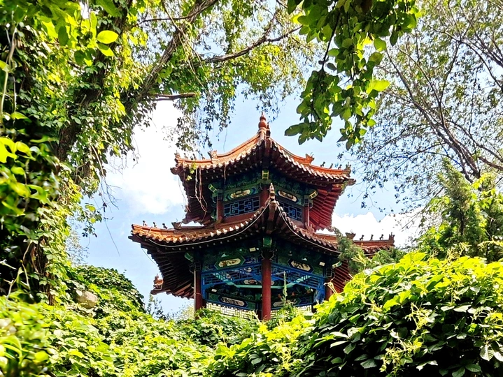绿树簇拥间,古亭卓然而立。飞檐翘角映着蓝天,彩饰斑驳诉说岁月,仿若一首无声的诗,静守时光,晕染古韵。