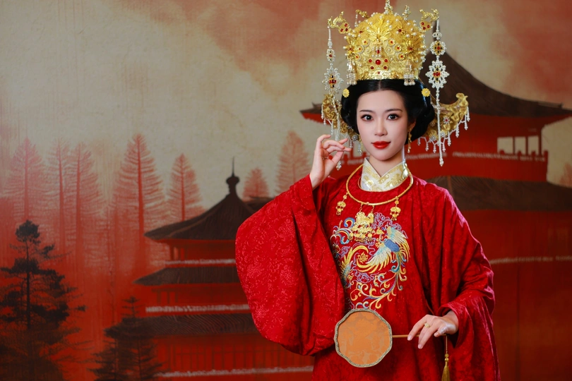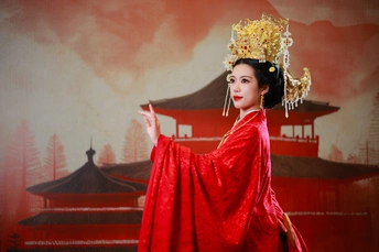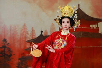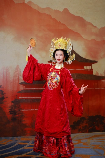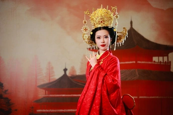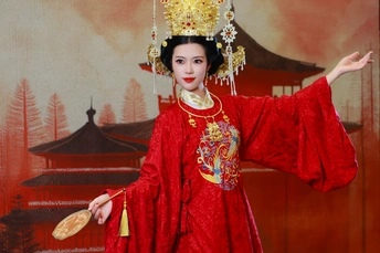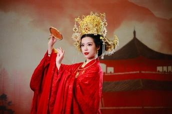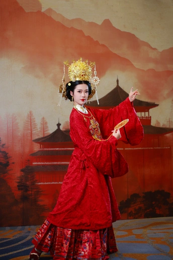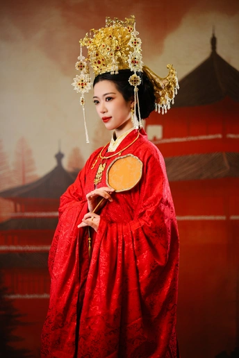 虹裳霞帔步摇冠,钿璎累累佩珊珊