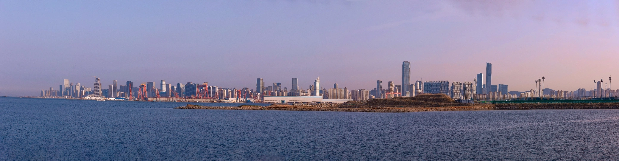 一次路过滨海的时候,看向对面的城市,觉得十分壮美,可惜自己只带了一颗720。所以我选择横向拍摄全景合成