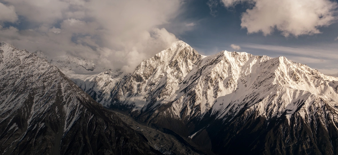 在那玛峰C1营地,金色时刻即将到来时,终于短暂地捕捉到了云雾散去的贡嘎山尖。