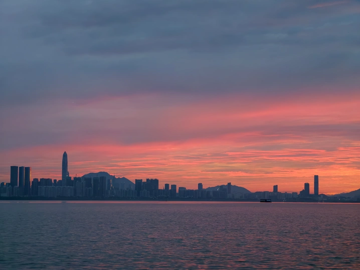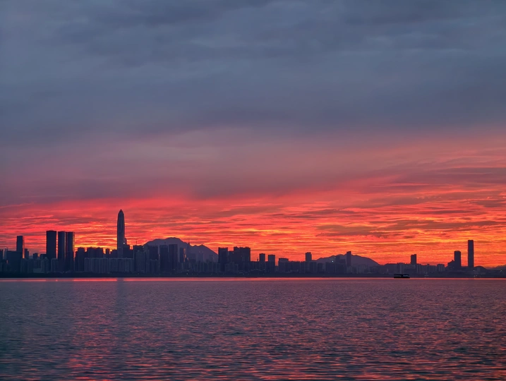 深圳湾 | 邂逅绝美火烧云 今天清晨奔赴深圳湾,收获了一场绝美的火烧云盛宴! 天还没亮我就到啦,看着天空从墨色一点点晕染成绯红色。橙红与暗云交织,高楼在这绚烂背景下勾勒出清晰轮廓,水面也被映得波光粼粼,美到失语! 大自然真的是最厉害的调色师,这梦幻般的色彩把整个深圳湾都点燃了!来深圳湾看一次火烧云吧,吹吹清晨的海风,感受这份独属于深圳的浪漫~
