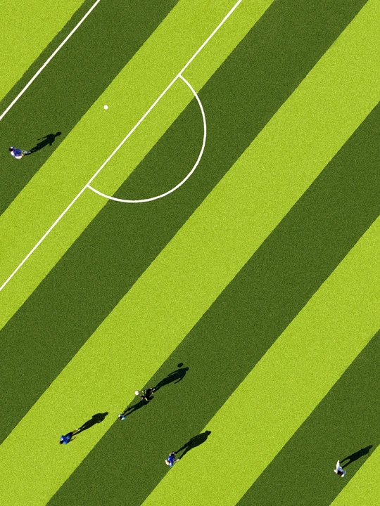 夕阳下,在一片青绿之间,球场上跃动的身影被拉长。极简的色彩和简单的光影,仿佛时间都慢下来了。
