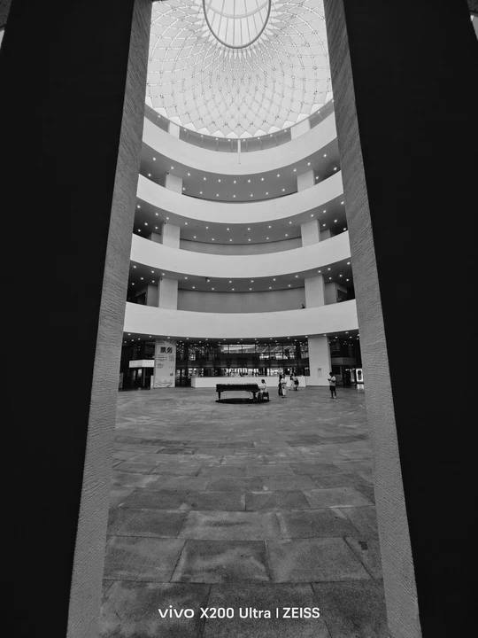 这组照片,没有色彩,却有温度。 没有刻意安排,却句句真诚。 扫街,对我来说,不是猎奇,而是用眼睛重新认识熟悉的一切。 新人在街头相拥,不知名建筑沉默矗立, 高楼的倒影从车窗掠过,旋转楼梯像时光隧道。 那些日常里容易被忽略的角落,在这一刻安静又动人。 我喜欢走在街上,用镜头去对话这个城市—— 它冷峻,却不疏离;它繁华,也不缺浪漫。 黑白只是形式,情绪才是灵魂。