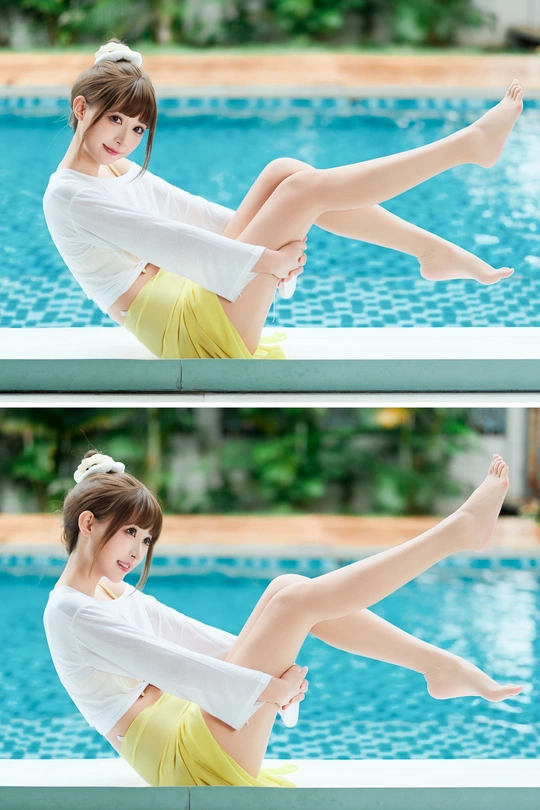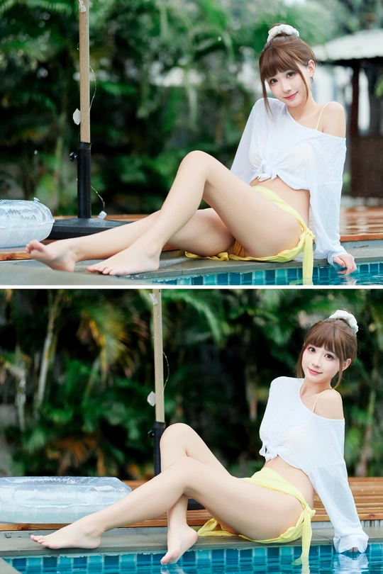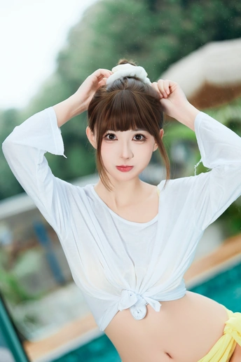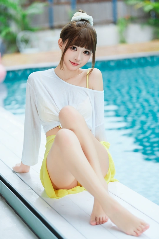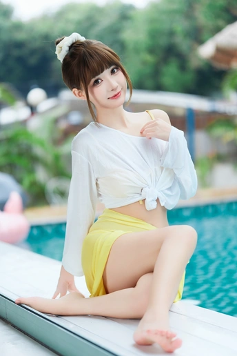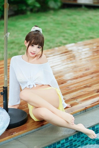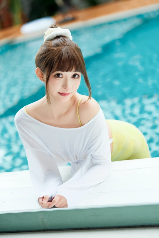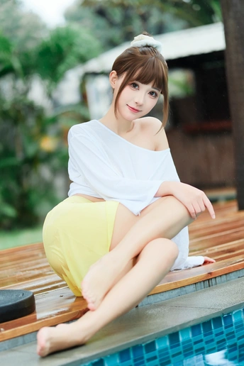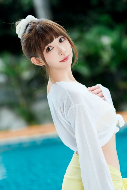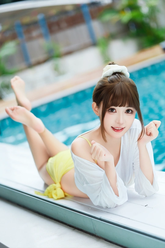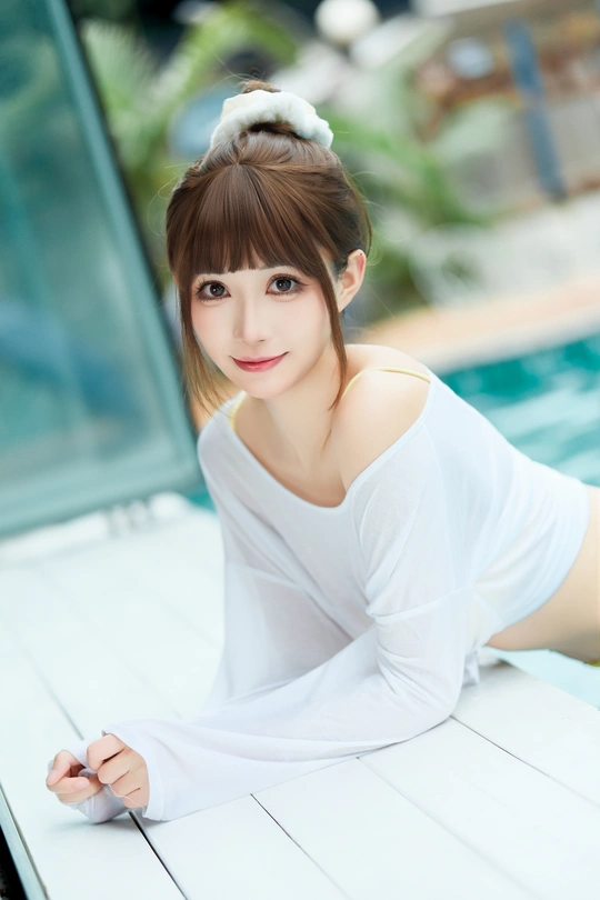 夏天刚到就在泳池边解锁了超甜拍照姿势~ 泳装白色宽松罩衫元气感拉满! 毛茸茸发圈更是点睛之笔,可爱加倍! 或托腮甜笑,或随性躺卧,每个角度都能拍出氛围感,快来抄作业~