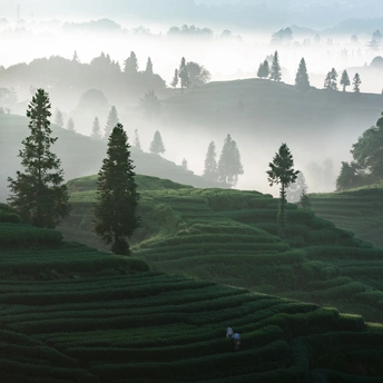 炎炎夏日,伴随着日出采茶的工作便开始了。这一天中最凉快的时候也是茶叶最好的时候