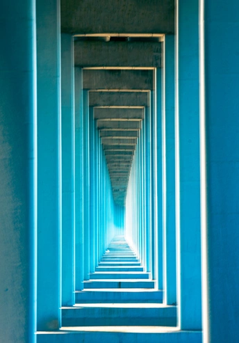 深圳深中通道,西落的太阳洒在海上高架桥梁上,形成了一道光的隧道。