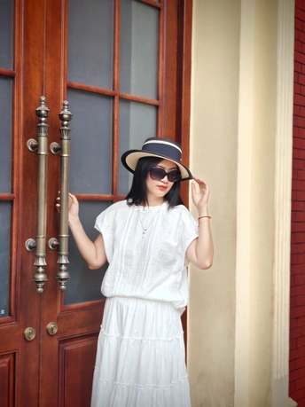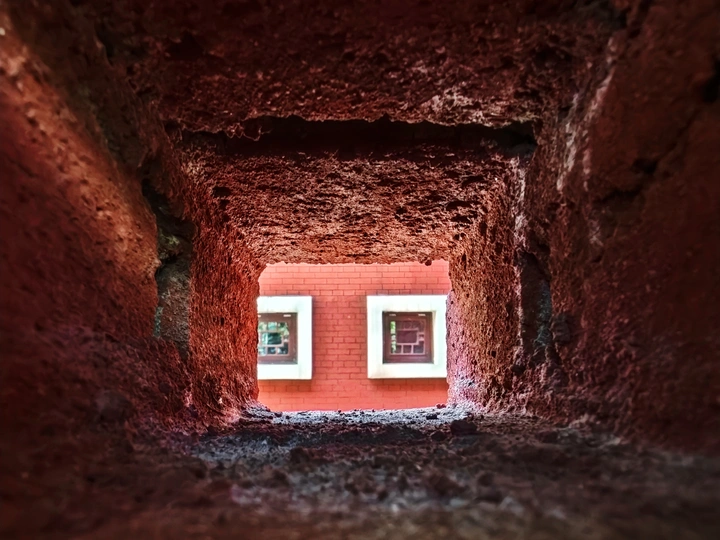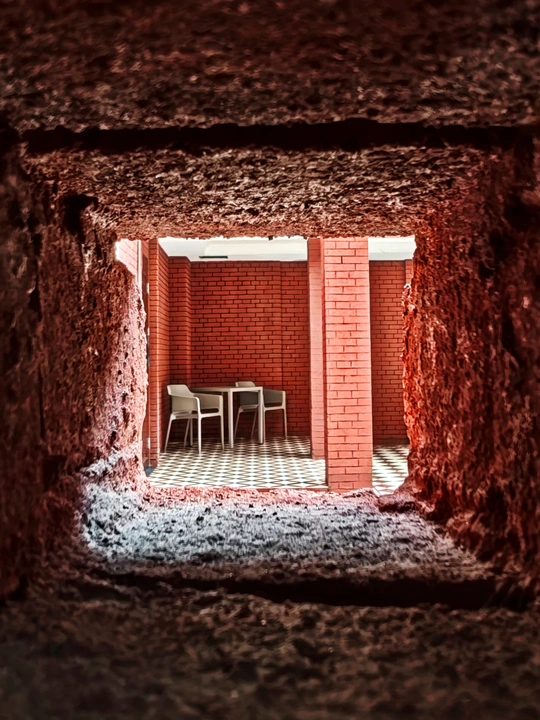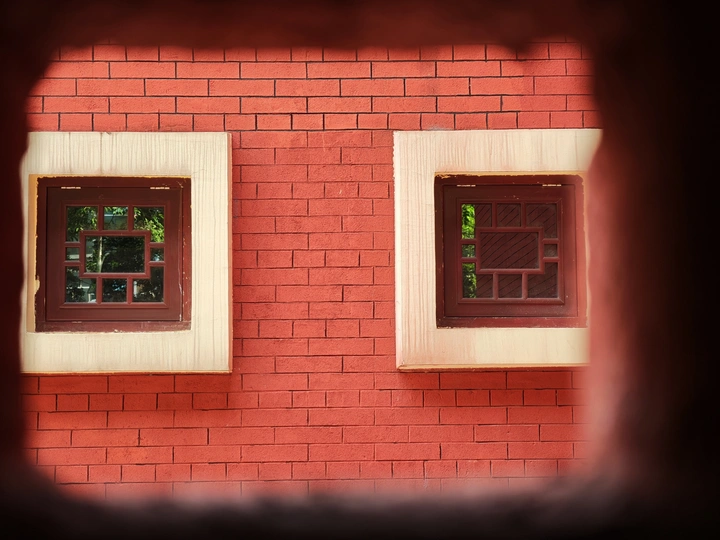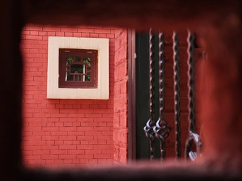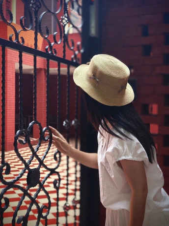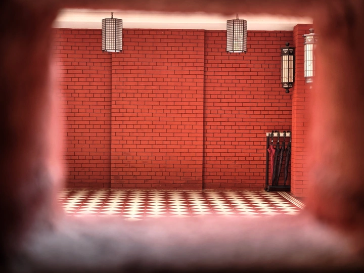 作品拍摄于广西省立艺术馆,利用外墙红砖孔洞构图,聚焦建筑内窗户、灯、凳子、地砖、铁艺等景物,调整角度以大光圈或长焦突出建筑细节,诠释建筑的秩序与设计魅力。光影下的人物作为红墙的点缀,使整组图更加生动。