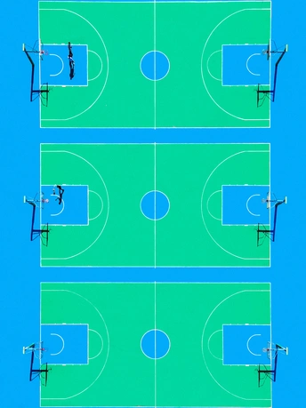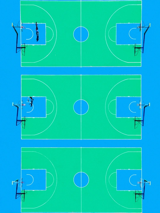生命不息,运动不止。航拍下的球场蓝绿相间,充满生命力。