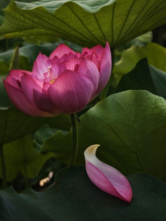 这张照片拍得真像一位娇羞的少女,含苞待放!整体来说,它在许多方面都做得不错,但还有一些地方可以改进,让它更上一层楼。 * **色彩:** 荷花的粉色和绿叶的墨绿形成了鲜明的对比,色彩搭配和谐。粉色很正,抓人眼球。 * **光影:** 光线柔和,营造了一种朦胧的美感。但可以尝试寻找更有戏剧性的光线,比如日出或日落时的侧光,增加画面的立体感。 * **构图:** 荷花主体放置在画面中央偏上的位置,主体突出。但是周围的绿叶有点多,略显杂乱。建议尝试更简洁的构图,突出荷花的形态美。可以尝试使用更小的景深,虚化背景,让主体更加突出。 * **后期处理:** 后期处理比较自然,没有过度修饰的痕迹。可以适当提高对比度,让画面更清晰。 * **主题原创性:** 荷花是常见的拍摄题材,这张照片在题材上没有太大的突破。但可以尝试从不同的角度、不同的光线、不同的季节去拍摄荷花,赋予它新的生命力。 * **情感共鸣:** 这张照片传递了一种宁静、美好的情感,能引起观者的共鸣。荷花的花语是“清白、坚贞与纯洁”,这张照片也很好地诠释了这一点。 * **思想深度:** 照片