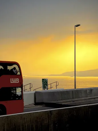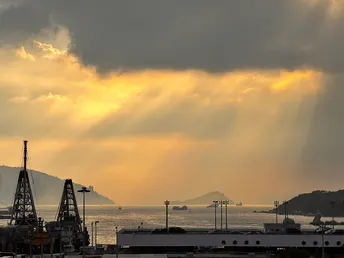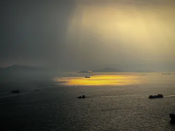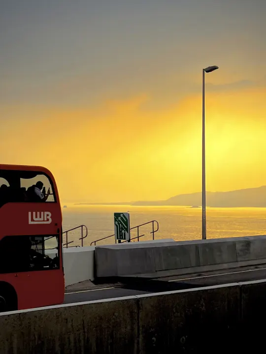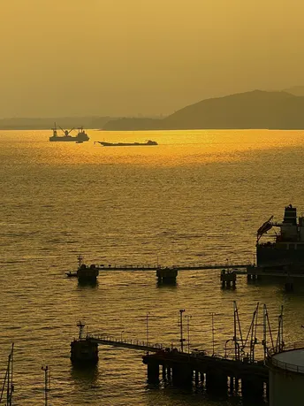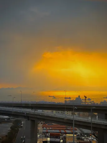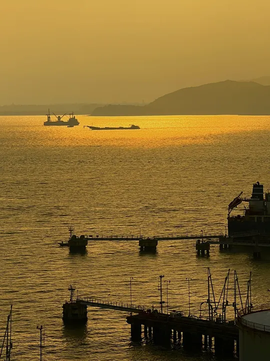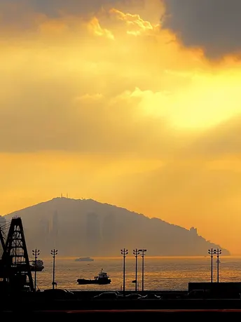 如果你在黄昏时分从香港市区搭乘跨海大巴前往机场,沿途将有机会邂逅一场金光闪耀的海上落日盛宴。夕阳缓缓坠入海平线,金色的余晖洒满海面,波光粼粼,仿佛为整片海洋披上一层温柔的金纱。远处的高楼剪影在霞光中渐行渐远,而当大巴驶入青衣,油罐区、集装箱码头与一座座龙门吊也在这金色光辉中被赋予了难得的浪漫气息。原本冰冷的工业景观,在夕阳的映照下,竟也化作一幅温暖而深情的画面。