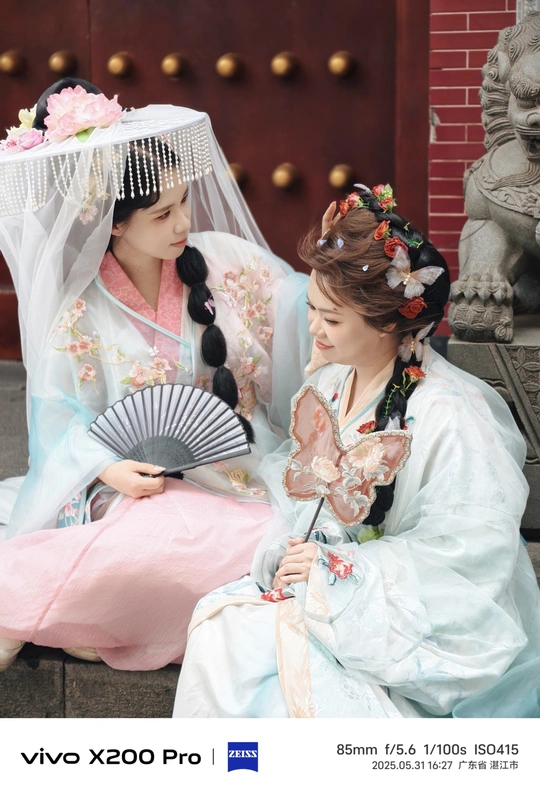 Shot on vivo X200 Pro. 端午佳节来临之际,两名妙龄女子身着轻盈的纱衣,双双缓步穿行于赤坎老街,静静感受着夏日小巷周边古色古香的独特气氛。她们时而端坐于古老的石阶上轻声低语,时而驻足于庙宇与古树下凝望远方,神情淡然且惬意......