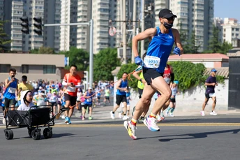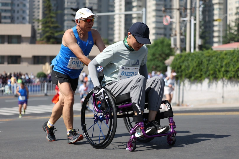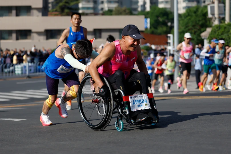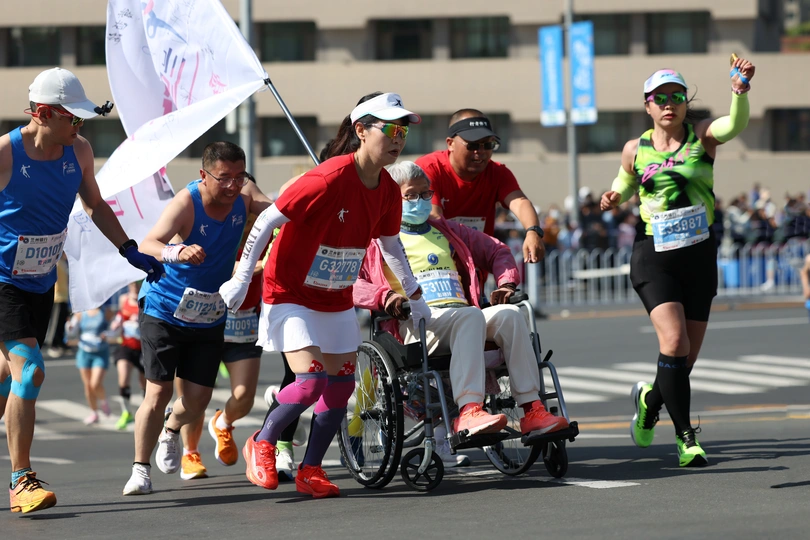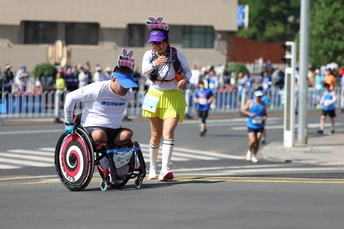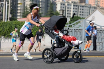 2025年5月25日,兰州马拉松16公里处的提升坡道上的瞬间。