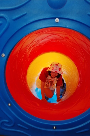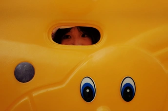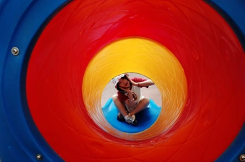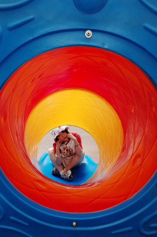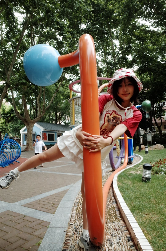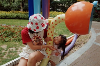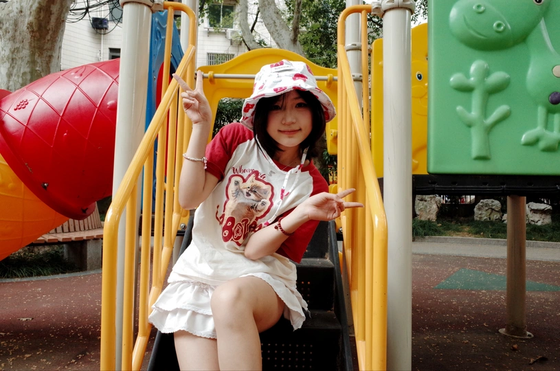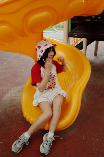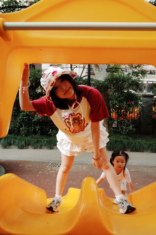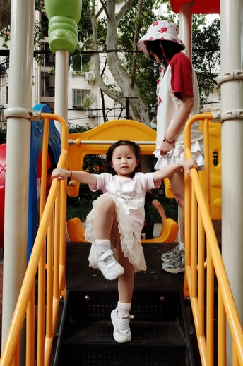 遇上执着小粉丝,儿童节的公园变成了一场追逐游戏~红白穿搭在黄色滑梯上格外亮眼,那个紧紧跟随的小身影,才是画面最动人的彩蛋