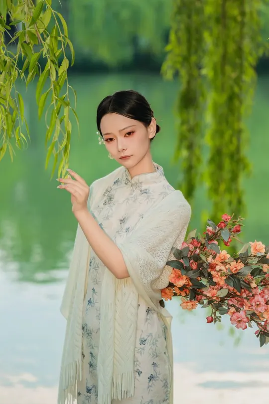 瘦西湖边的旗袍美女