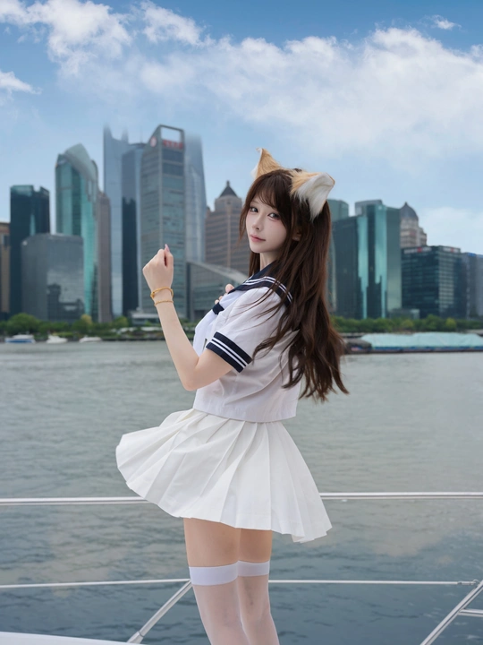 阳光,海军衫,微风吹动的裙摆,飘扬的秀发。