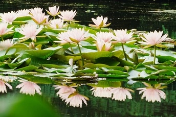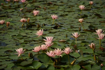 在这个宁静的夜晚,我想与您分享一种美丽而神秘的植物——睡莲。睡莲是一种生活在水中的多年生草本植物,以其优雅的姿态和清新的气息赢得了人们的喜爱。它们的花朵色彩丰富多样,有纯白的、粉红的、黄色的等等,每一朵都像是大自然精心雕琢的艺术品。 睡莲的花朵通常在清晨绽放,傍晚闭合,仿佛在告诉我们时间的流逝。它们在水面上静静地漂浮着,仿佛是一位位优雅的舞者在水面上翩翩起舞。睡莲的叶子宽大而圆润,像是一把把绿色的伞,为花朵提供了遮蔽和保护。 睡莲不仅美丽动人,还具有很高的观赏价值和药用价值。它们的花瓣和叶子可以用来制作香水和护肤品,具有很好的美容效果。同时,睡莲还具有清热解毒、利尿消肿等功效。 在这个美丽的夜晚,让我们一起欣赏睡莲的美丽和神秘吧!让我们感受到大自然的魅力和神奇。同时,也希望我们能够在繁忙的生活中,找到一份宁静和美好,让心灵得到放松和愉悦。