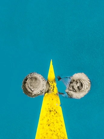 黄线穿破蓝的深邃,两朵银斑似星子坠落的残片,在这裁开的空间里,打捞散碎的光,拼凑昨夜遗落的梦。
