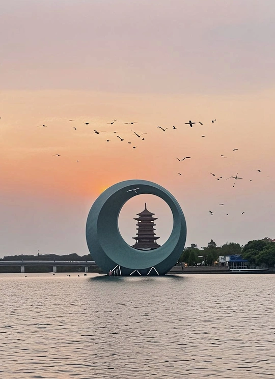 厦门月光环与杏林阁同框。(vivo手机X90)
