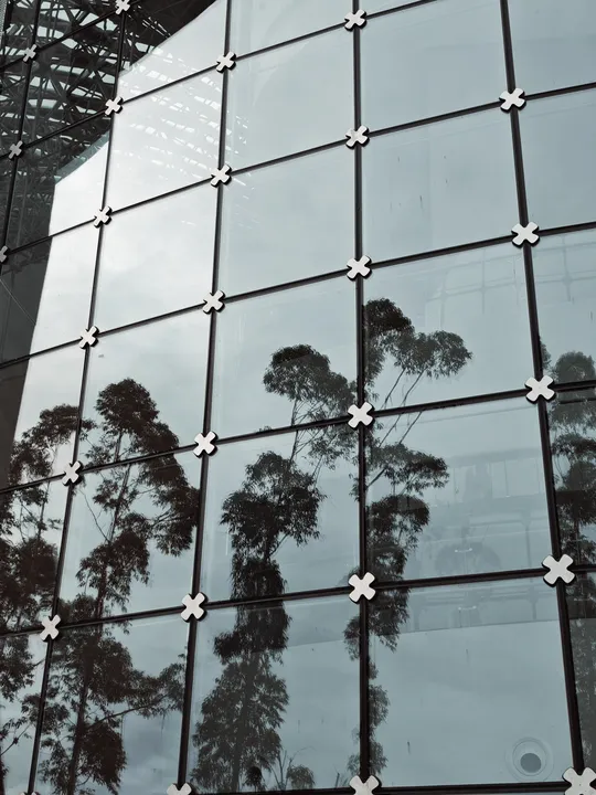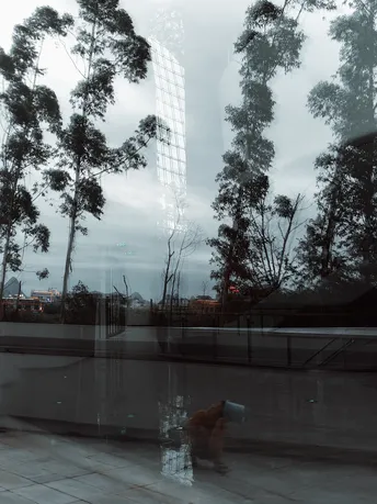 偶然绕行一圈桂林漓江歌剧院,随机拍摄了一组玻璃里的镜像世界,周围高大的树木映在玻璃中,构成了一幅幅奇特的镜像,置身其中,有些迷幻