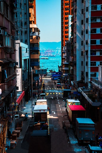 香港坚尼地城地铁站口域多利道,一条通往大海的街道,喧闹的街道里,可以静静地观望大海。