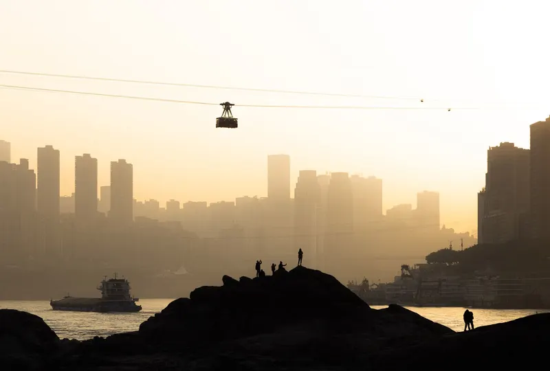 夕阳如纱,轻轻地披在山城的肩头。长江索道的轿厢,似时光的使者,悠然滑过江面。岸边的礁石上,人影绰绰,那是生活与风景的交融。在这暖黄的色调里,我邂逅了重庆独有的浪漫,岁月在此刻,美得像一首诗。