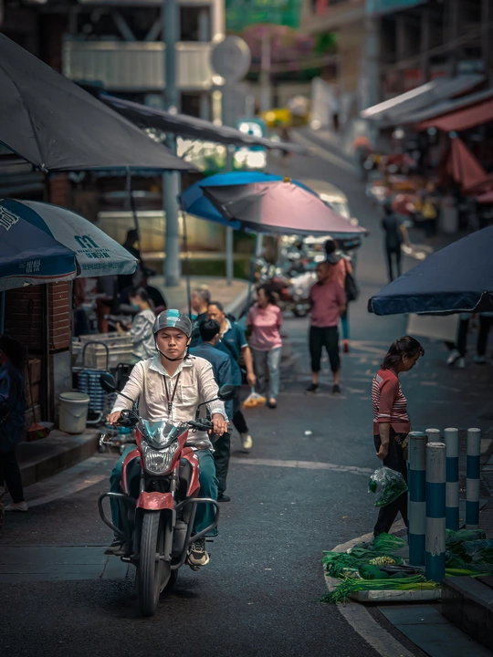 街头烟火缭绕,骑行穿梭其间,平凡日常里,藏着生活最本真的热闹 。