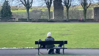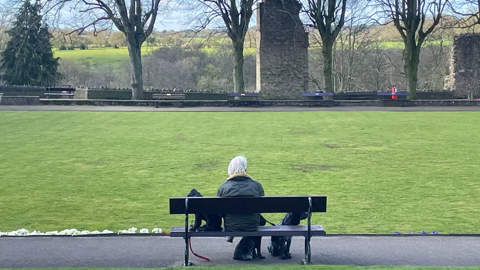 公园在山上,风很大,英国的4月还是这么冷,三只狗守在老人身边,静静地享受下午的阳光