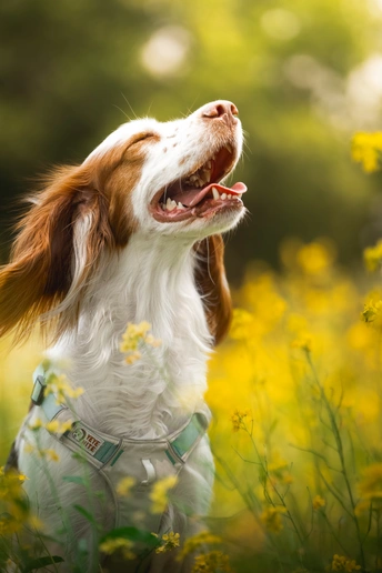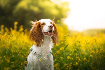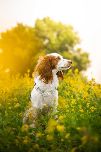 油菜花丛中的小狗