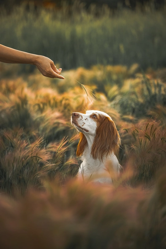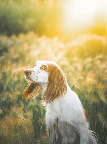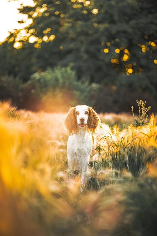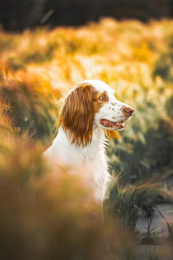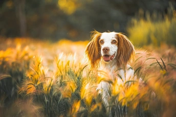 大麦草丛中的小狗
