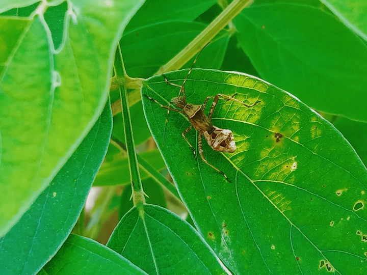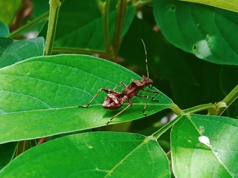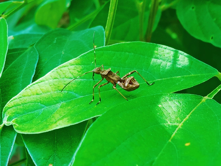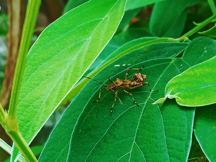 介绍一下 (这只昆虫,像蚁一样,走在叶子上停着,尾巴有毒针,有攻击性,害怕人,会躲在叶子下里面,有太阳才会出来的,晚上不出来的) 天敌:农药 毒针:蚁、飞蛾、毛毛虫等 夏天:11~10月/5-6月进行交配产卵/7-8月老熟若虫羽化为成虫 夏天才能出来的 食物:苹果、柑橘、山楂、花椒、葡萄等 科:缘蝽科