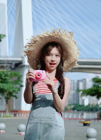 草帽是风的邀请函,粉相机是快乐的捕手 踩着阳光在街头散步,连影子都变得慵懒 偶遇绿意盎然的角落,和艺术雕塑玩闹合影 每一帧画面都像被调慢的电影镜头 把琐碎日常装进取景框 原来闪闪发光的瞬间,一直都在身边呀!