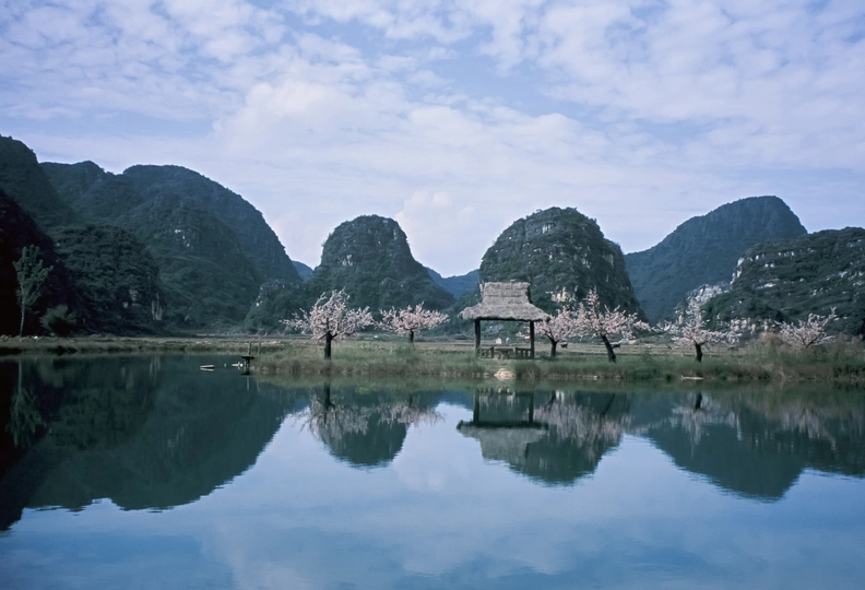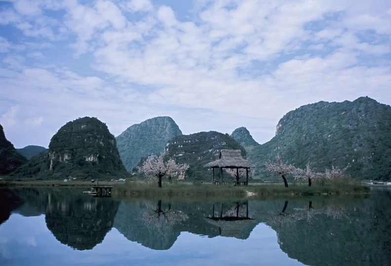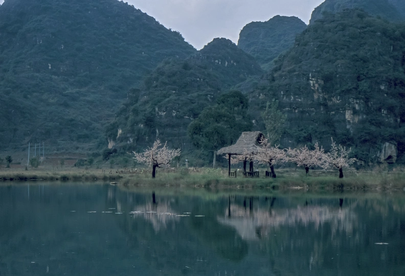 在彩云之南,有一处宛如仙境般的梦幻之地——普者黑青丘。这里是大自然精心雕琢的杰作,每一寸土地都流淌着诗意与浪漫。看呐,那雄奇的喀斯特地貌拔地而起,座座山峰似是从远古走来的巨人,层叠起伏间诉说着岁月的沧桑。峰林在阳光的轻抚下,绿意晕染,仿若披上了一层生命的华裳,蓬勃的生机在天地间肆意蔓延。澄澈如琉璃的湖水,宛如大地的眼眸,静静地倒映着蓝天与峰影,勾勒出一幅完美对称的画卷。微风轻拂,湖面泛起层层涟漪,那是大自然奏响的美妙乐章。岸边的粉白花朵在风中摇曳生姿,如一群灵动的仙子,翩翩起舞,为这壮丽的山水增添了几分柔婉与娇羞。一座古朴的小亭子临水而筑,似一位遗世独立的隐者,静静地守望着这片宁静的天地。它是时光的见证者,目睹了普者黑青丘的日升月落、云卷云舒。 相机:尼康zoom 700vr 胶片:5294 扫描仪sp3000 时间:2017年11月