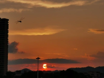 看,那只蜻蜓,在夕阳的舞台前翩跹。橙红的天幕下,城市与山峦都成了配角,它独自舞着,舞着这黄昏的浪漫与自由。