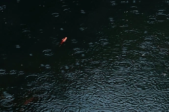 雨滴轻叩水面,晕开圈圈涟漪,似时光写下的温柔注脚。一尾红鱼游弋,在墨色里划出灵动轨迹,于这雨落的静谧间,打捞起满池朦胧诗意 。