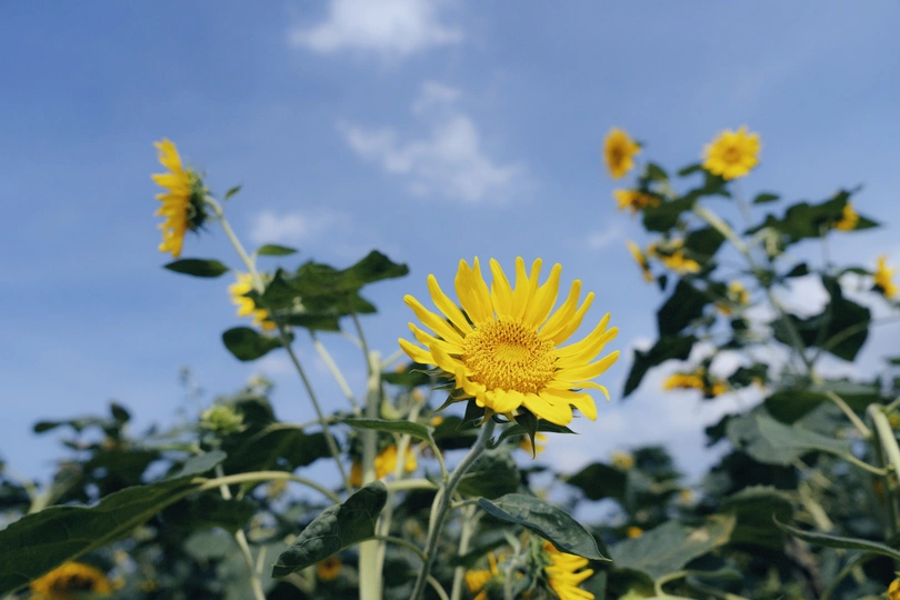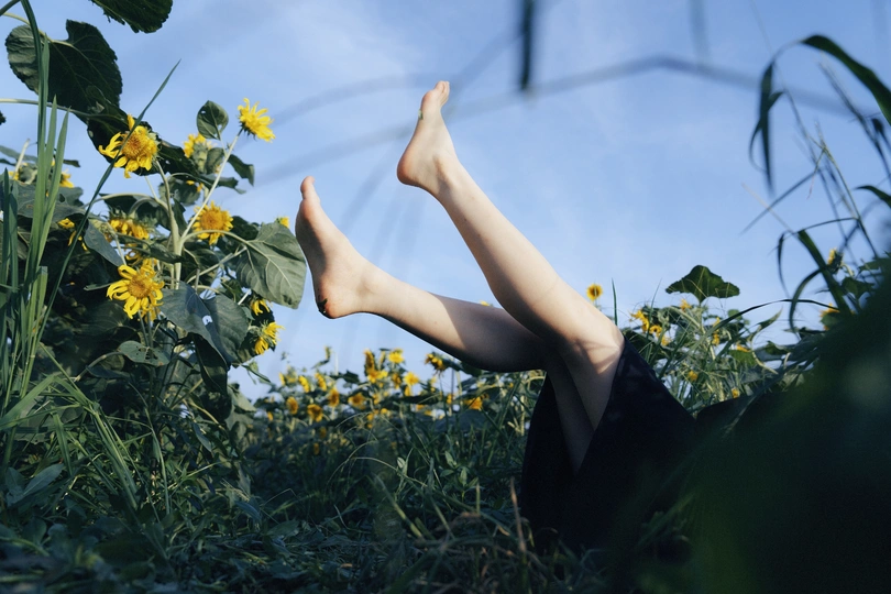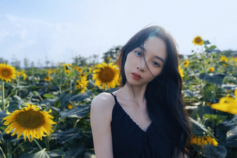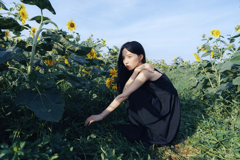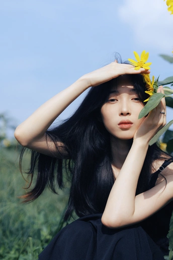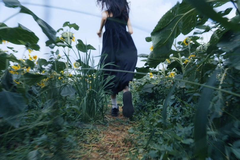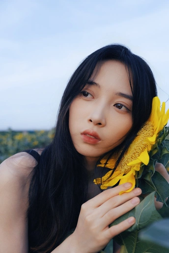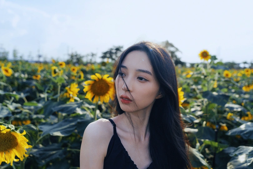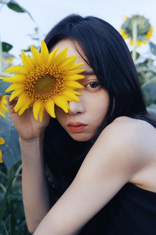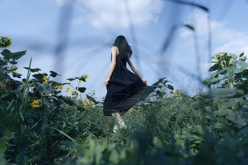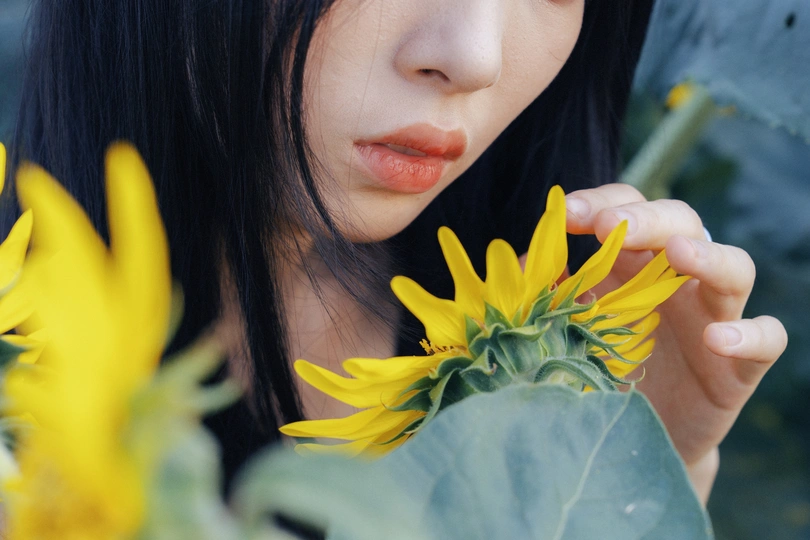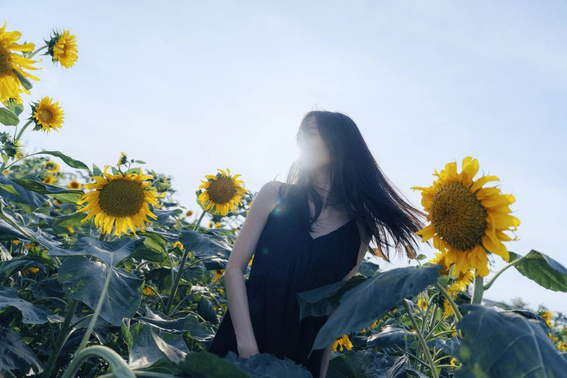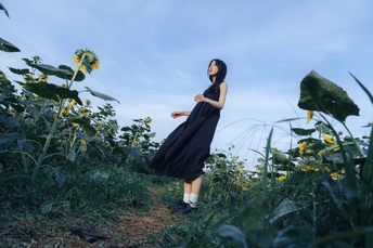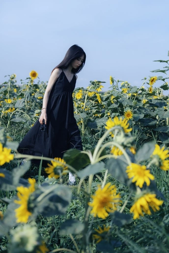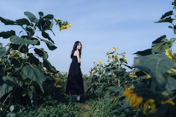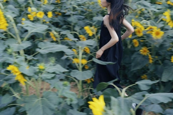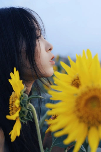 在向日葵的金黄里 风拂发丝 带走了燥热 也捎走了裙摆里淡淡的忧伤