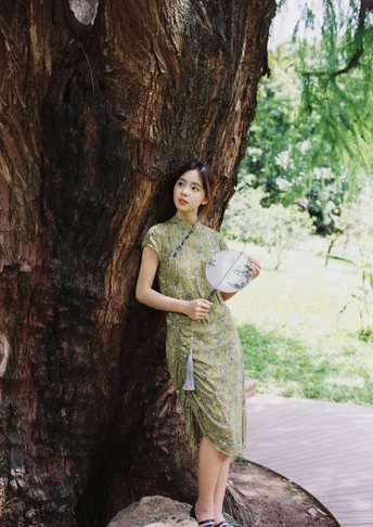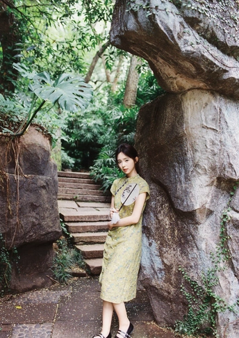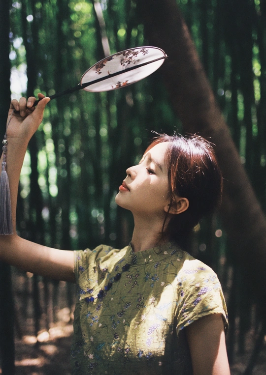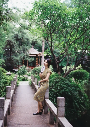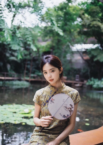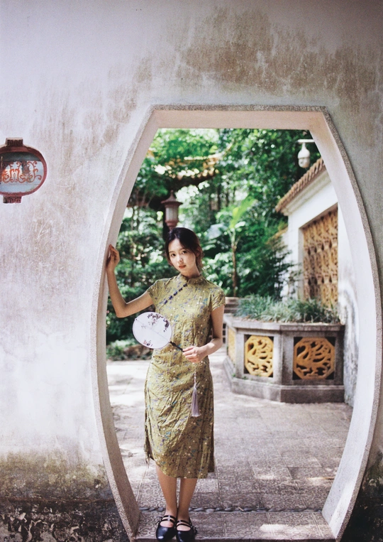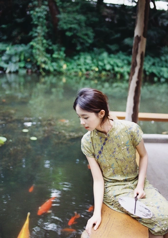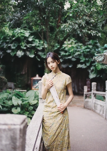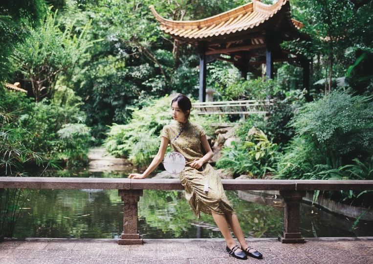 在翠竹林间,旗袍裹身,团扇轻扬,光影斑驳洒落。 转角古亭边,碎花点缀衣襟,微风拂动发丝,岁月都慢了半拍。 静坐水畔,荷叶田田,扇面藏诗意,一袭旗袍,晕染出旧时光的温婉,把江南的韵,都穿在了身上 。 ------------------ 拍摄设备:尼康 F100|柯达金 200