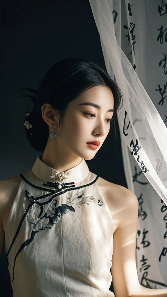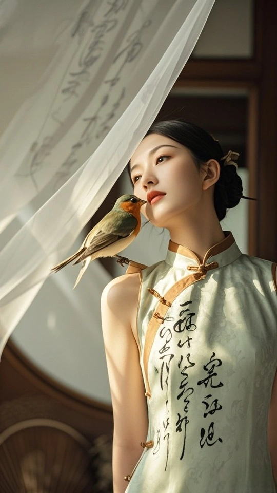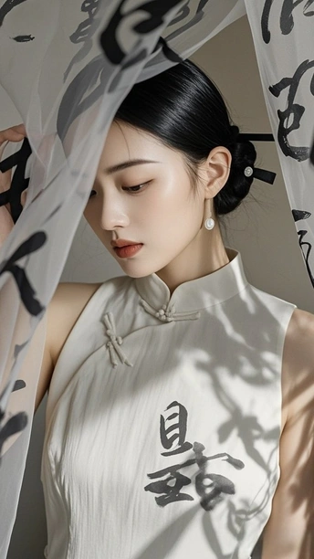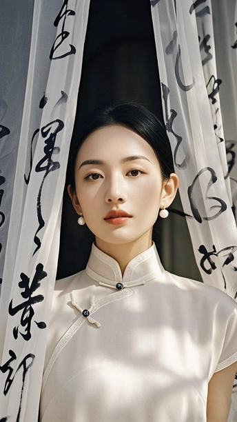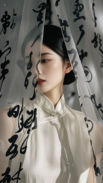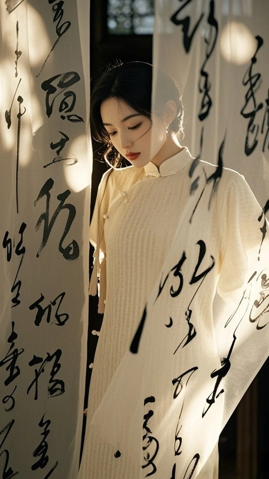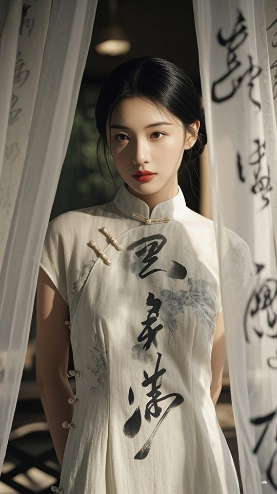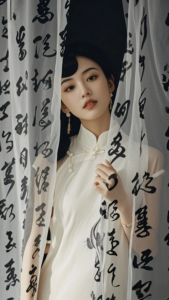 纱帘筛落的字句 在素色襟口游走如蛇 蜿蜒的墨痕缠绕盘结 像未写完的诗行 悬在呼吸间的微澜 墨影悄然晕染生长 将时光揉作碎银 缀入绸缎的经纬 每个洇开的字符 都噙着欲坠的叹息 风过处 这些游荡的文字便飘散 留下空寂的襟口 在静默中微微震颤 如同未尽的低语 悬于记忆的断崖边
