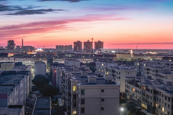 县城的晚霞与灯光